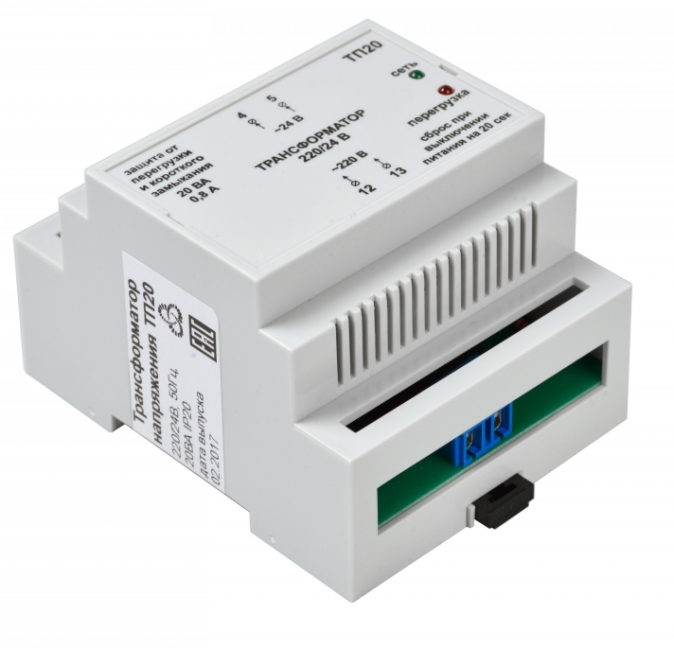 Трансформатор ТП20 является источником питания переменного тока. Он понижает напряжение с 220 В до 24 В.